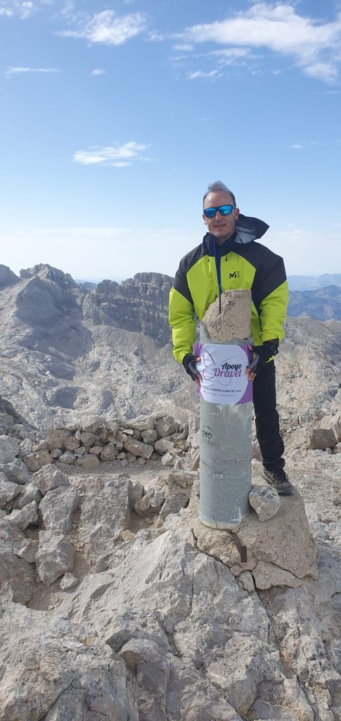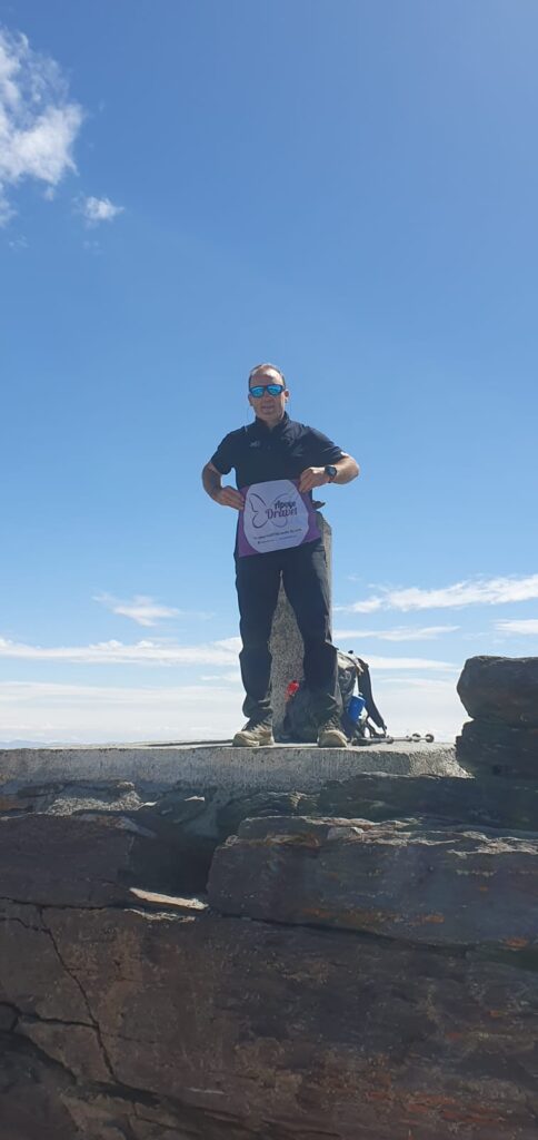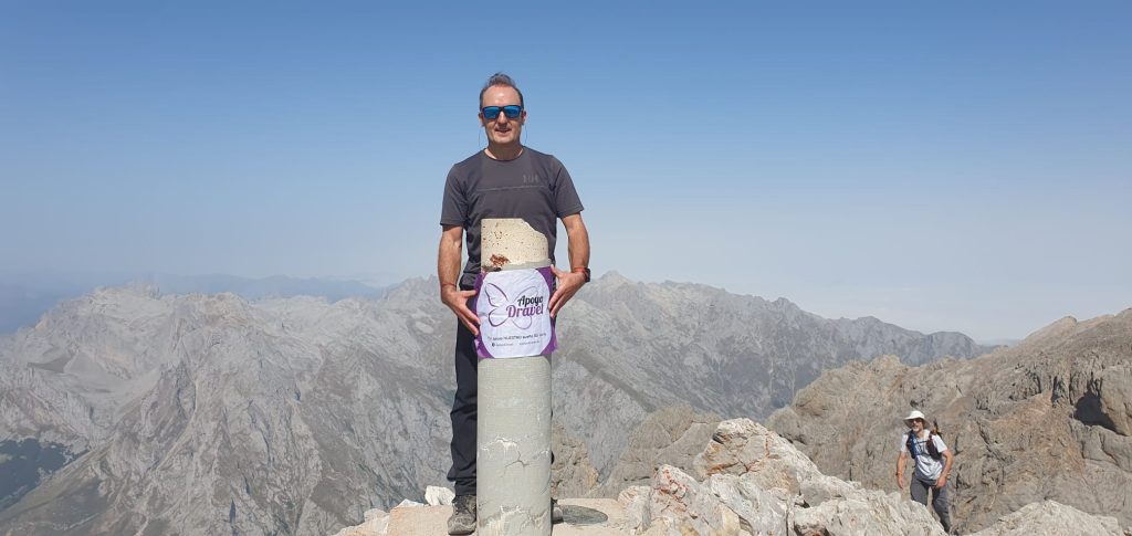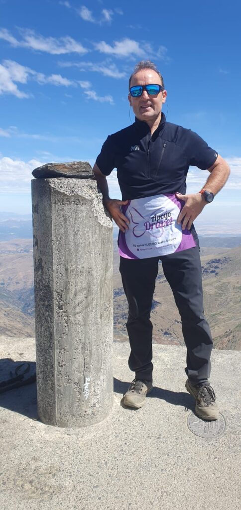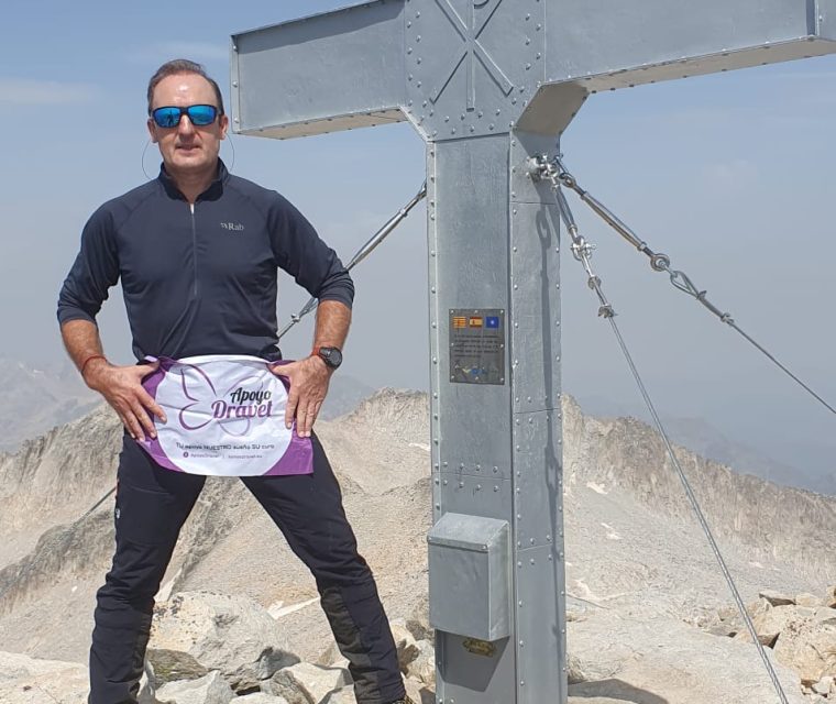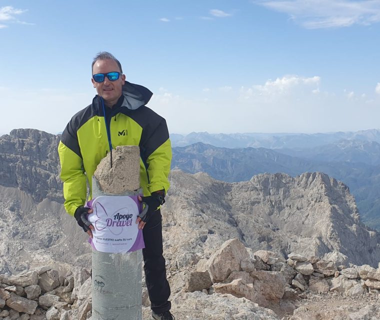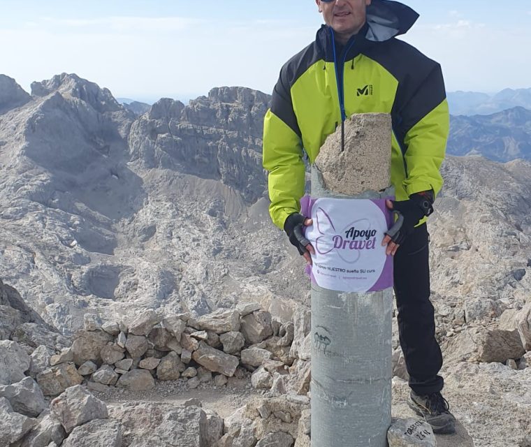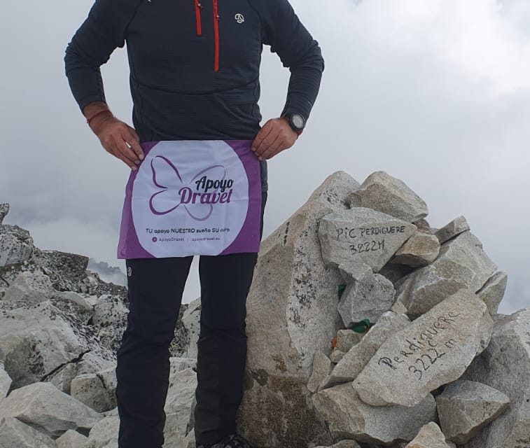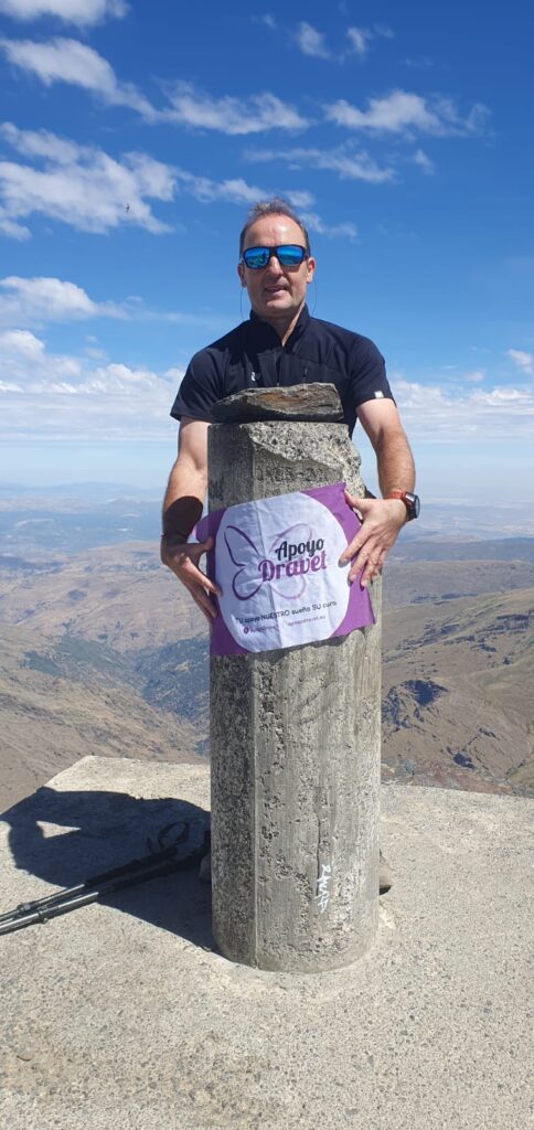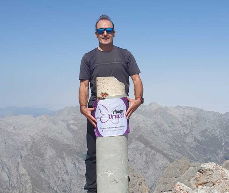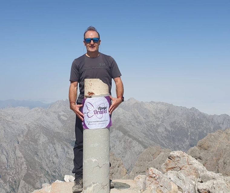 El voluntario José Manuel Iñarrea lleva el banderín de ApyoDravet en sus retos deportivos para dar visibilidad y fomentar el conocimiento y la investigación del síndrome de Dravet y otras enfermedades raras con epilepsia.