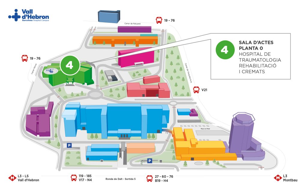 Salón de actos Planta Baja del Hospital de Traumatología, Rehabilitación y Quemados. Ver mapa.